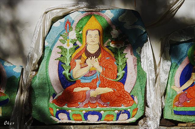 格尔底寺的清晨流动着迷幻的光影,当太阳越过山头时,揭开了朦胧的纱帐,逐一地把寺庙的金顶燃亮,接着金阳就像溢出的水般,渐次地占领了整个寺庙、民宅。