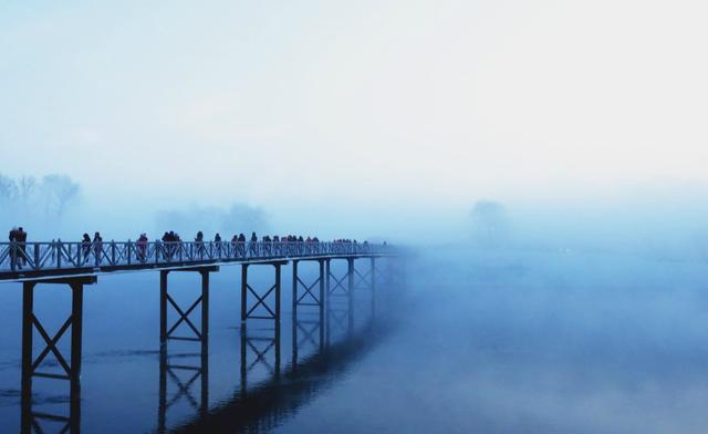 雾淞岛实地面积极大(寒风之下要完整走毕颇有难度),只是「景区」面积不大,但因为随便都是奇景,一刻雾来、一刻雾散,几乎每秒景色都不同,个人觉得更胜黄山云海了。真心,看到太浓雾不用觉得可惜,稍等几分钟,甚至数秒景色又有不同。雾色缠绵在树林之间神秘而浪漫、雾散后一片蓝天与白雪最单纯而可爱色彩配衬,是我心目中最动人的东北色彩。自问这些年在很多地方已看过雪,甚至觉得下雪很麻烦,根本如下雨一样;在这里最平静一景、最壮丽的奇观,绝对改变我想法,是我看过最完美的雪景。