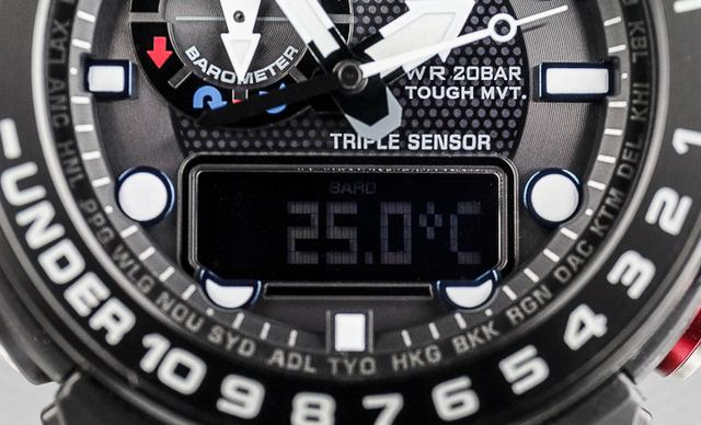 GWN-1000属于Gulfmaster系列且被归在G-SHOCK旗下,部分功能虽然与PRO TREK登山表相仿,但两者却分别属于不同的产品线,PRO TREK推出的PRW-6000在外型上有了大幅度的改变,不再那么朴素反而像G-SHOCK的设计看齐。从外观来看全新的PRO TREK PRW-6000跟小编要介绍的G-SHOCK GWN-1000还真有几分相似,除了同样采用指针、双显示以外,也多了子盘的设计,但它俩最大的差异还是在于侦测项目上,因为GWN-1000是针对海洋所开发的表款,对于海象测量的项目自然也比较丰富。