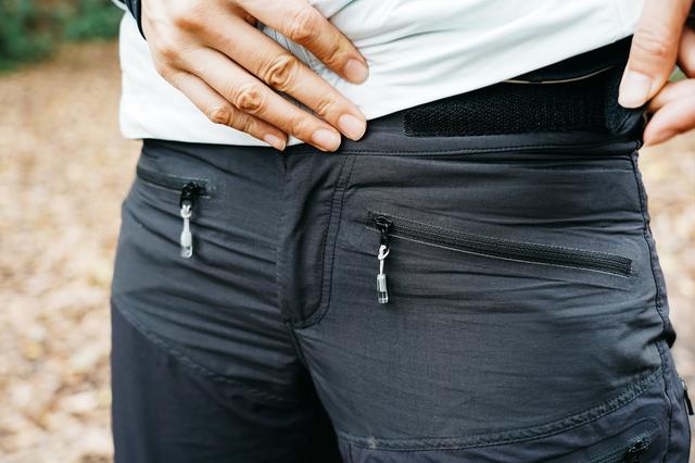 另一处细节是裤脚的拉链,用意是让裤腿能够贴合不同款式的登山鞋:若是高帮鞋就拉宽,低帮鞋就拉紧。此外这样的设计也有助于穿脱。