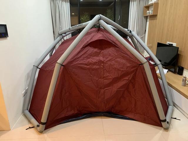充气帐绝对是目前在营地中辨识度最高的帐篷了;Heimplanet 其他型号的充气帐要不就大太或太小,目前来说 Heimplanet Backdoor 充气帐非常适合二大二小或是二大一小的家庭露营帐篷,而且只需一个人就可以轻松搭设,不像穿骨帐需要费时搭设内外帐,可以说是省时又省力的好选择。