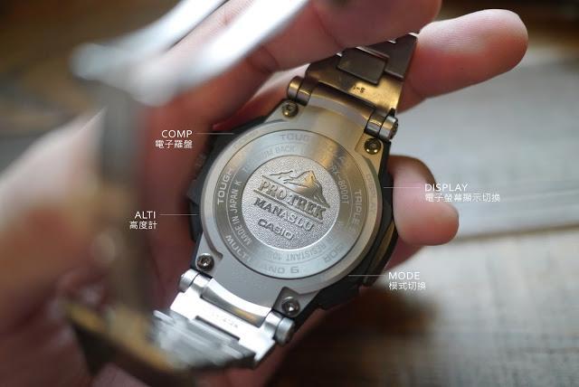 表身和表带都是使用轻量的钛金属打造,搭配防刮防磨的蓝宝石玻璃表面,总重140克,跟一般塑胶表比起来不算太轻,但坚固耐用才是PRO TREK的拿手菜。