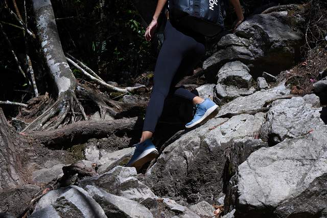 安全轻松通过木栈道跟石阶后,经过的地形是原始树林山径,地上树根盘屈而且枝节交错,很容易不小心就被树根绊倒。这次我所体验的Teva Gateway有低帮跟中帮两种款式,我穿的是让脚踝有多一层防护的中帮,避免脚踝在错综复杂的地形受到伤害,比较常见的伤害就是刮伤或扭伤,多一层保护就多一个保障,从事户外活动还是要安全第一。