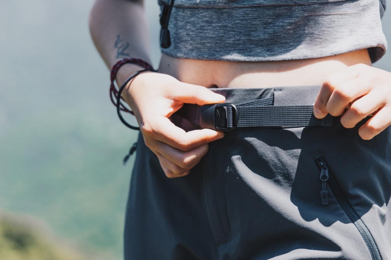 裤头从照片中很明显看到是平整的,这大大增加了舒适度,裤头调整式腰带的优点有两个,几年后腰围的改变还是能穿得下,以及下山后吃完大餐都可以调整松一点,不会紧到不舒服。