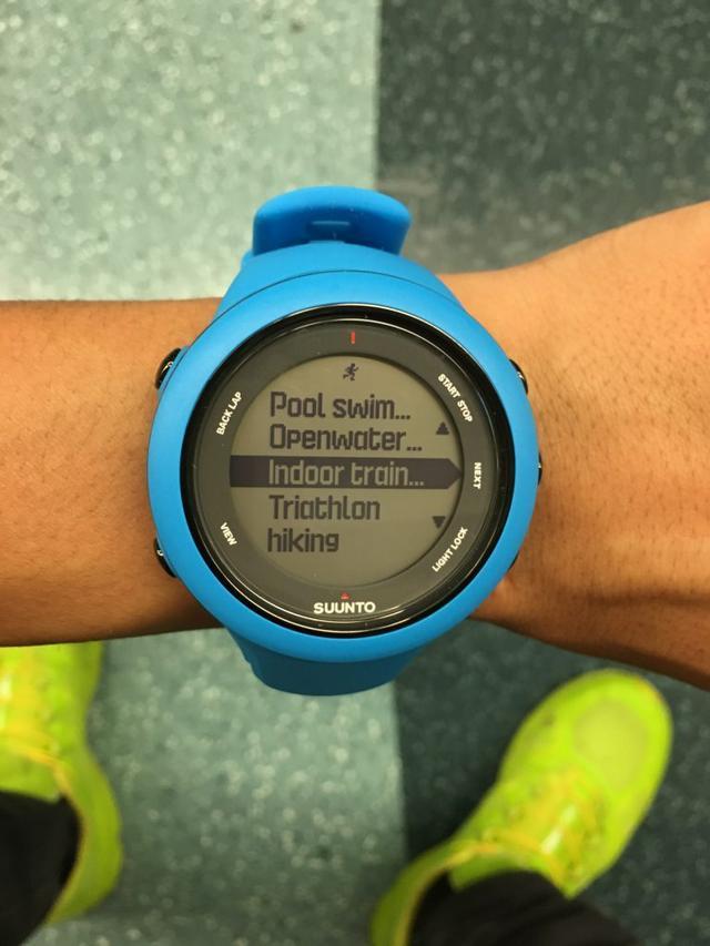 手表内建了多种运动模式:跑步、户外游泳、室内游泳池练习、室内练习、三项铁人、徒步、骑行。今次我就选用了室内练习模式。
